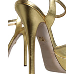 Dolce & Gabbana Gold Bette Leather Heels Sandals Shoes