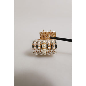 Dolce & Gabbana Gold Brass Glas Crystal Faux Pearl Embellished Brooch