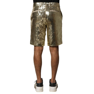 Dolce & Gabbana Gold Sequin Polyester Embellished Bermuda Shorts