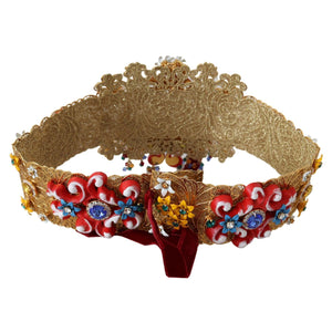 Dolce & Gabbana Embellished Floral Crystal Wide Waist Carretto Belt