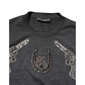 Dolce & Gabbana Gray Embroidery Knit Men Pullover Sweater
