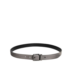 Dolce & Gabbana Gray Leather Silver Tone Metal Buckle Belt