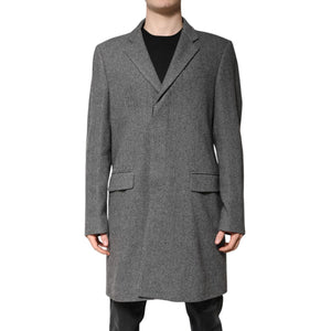 Dolce & Gabbana Gray Wool Single Breasted Trench Coat Jacket