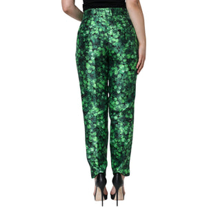 Dolce & Gabbana Green Clover Silk Satin High Waist Tapered Pants