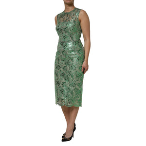 Dolce & Gabbana Green Cotton Floral Lace Sheath Midi Dress