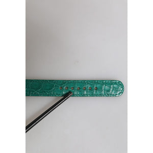 • Dolce & Gabbana Green Exotic Leather Gold Tone Metal Buckle Armband