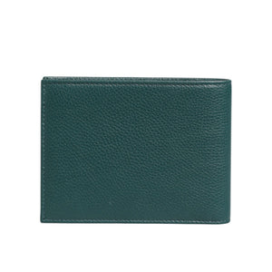 Dolce & Gabbana Green Leather DG Logo Engrave Men Bifold Card Holder Wallet with metal logo plaque, pebbled texture, made in Italy.