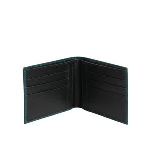 • Dolce & Gabbana Green Leather DG Logo Engrave Men Bifold Card Holder Wallet open showing interior card slots