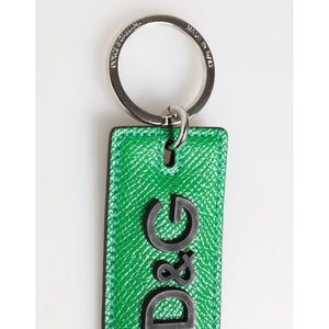• Dolce & Gabbana Green Leather Logo Metal Ring Keychain Holder Men Keyring