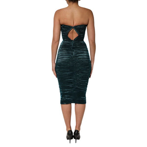 Dolce & Gabbana Green Silk Satin Fitted Strapless Dress
