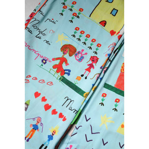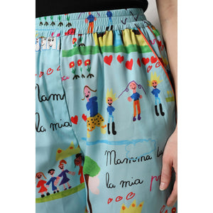 Dolce & Gabbana Light Blue Drawing Mid Waist Wide Leg Pants