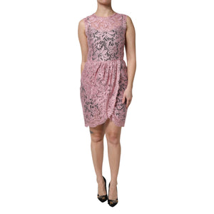 Dolce & Gabbana Pink Floral Lace Sleeveless Sheath Dress
