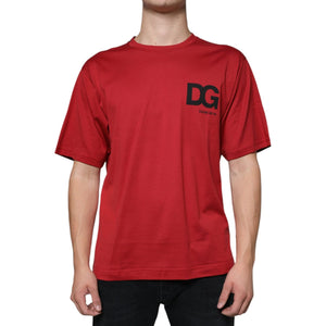 Dolce & Gabbana Red Cotton DG Logo Print Crew Neck T-shirt