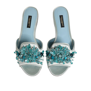 Dolce & Gabbana Silver Blue Leather Bead Embellish Slide Shoes