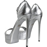 Dolce & Gabbana Silver Leather Platform Keira Sandals Shoes