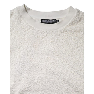 Dolce & Gabbana White Cotton Fleece Crew Neck Sweater