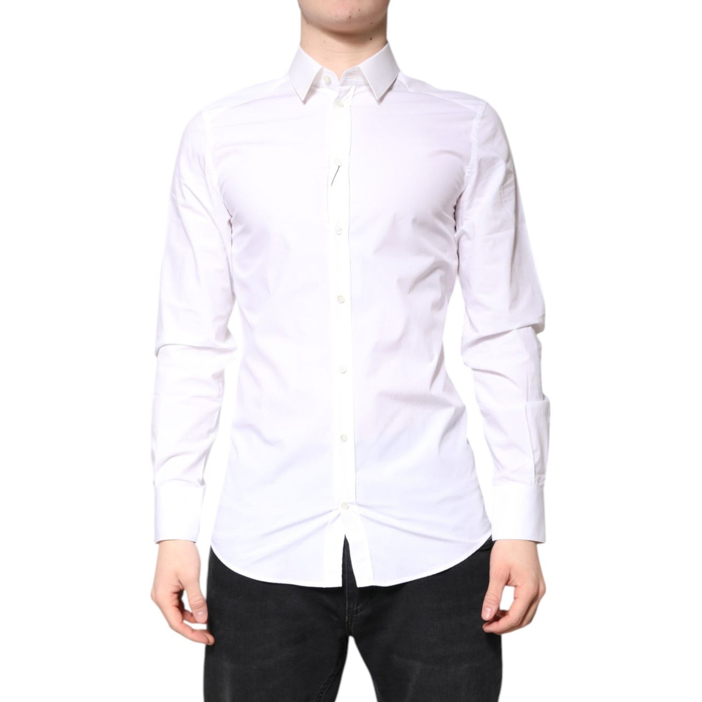 • Dolce & Gabbana White Cotton GOLD Dress Formal Collared Shirt