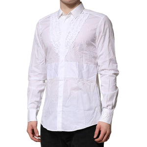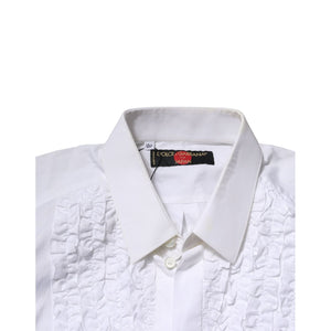 Dolce & Gabbana White Cotton Ruffled Detailing Formal Shirt