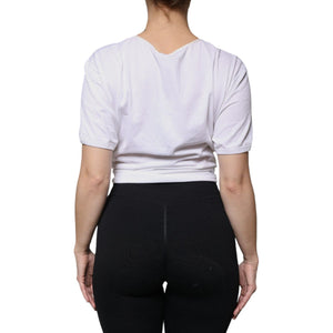 Dolce & Gabbana White Cotton Silk Round Neck Wrap Blouse Top