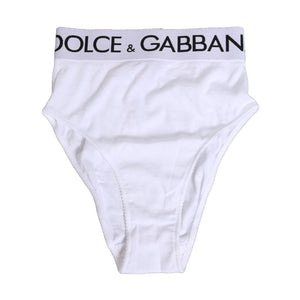 Dolce & Gabbana White Cotton Stretch High Waist Panty Underwear