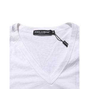 Dolce & Gabbana White Cotton V-Neck Short Sleeves T-shirt