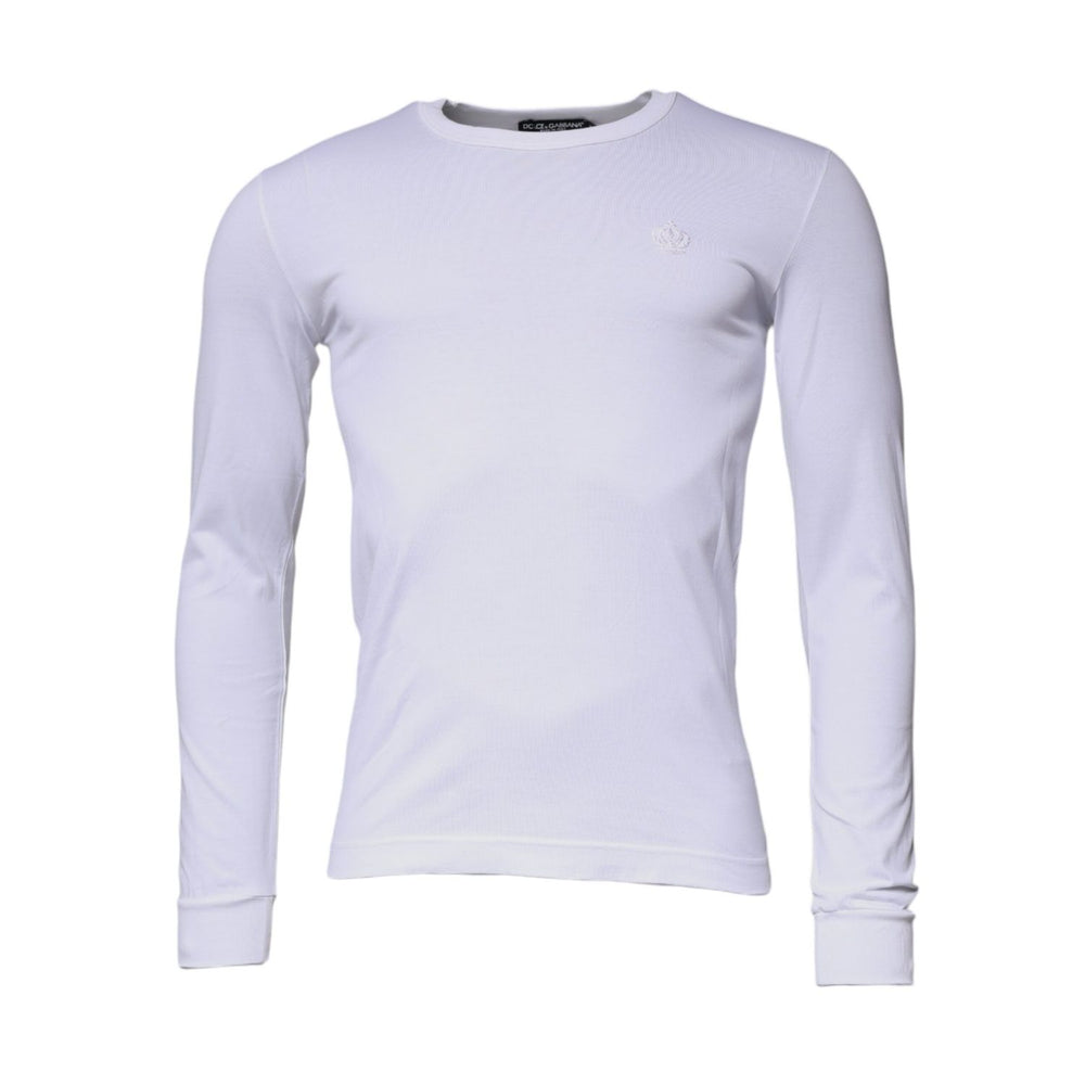 Dolce & Gabbana White Crown Crew Neck Cotton Pullover Sweater