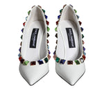 Dolce & Gabbana White Crystals Leather High Heels Pumps Shoes