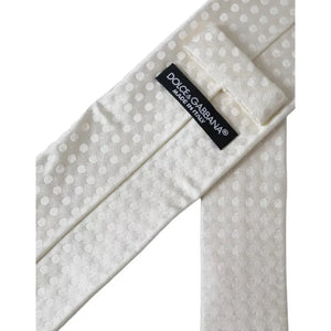 Dolce & Gabbana White Dotted Silk Classic Adjustable Men Tie