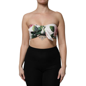 Dolce & Gabbana White Floral Print Cropped Bustier Corset Top