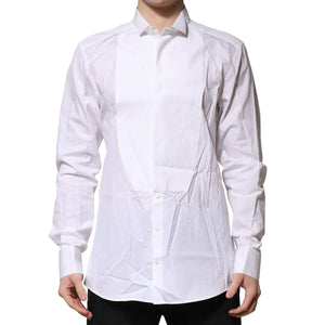 • Dolce & Gabbana White GOLD Bib Poplin Dress Men Formal Shirt