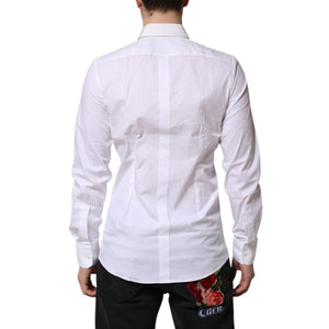 Dolce & Gabbana White GOLD Cotton Collared Dress Shirt Top