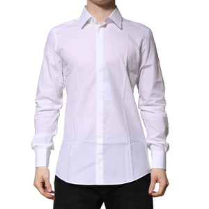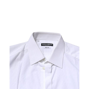 Dolce & Gabbana White GOLD Cotton Long Sleeves Men Formal Shirt