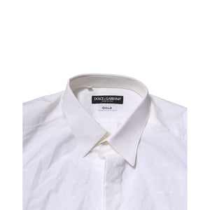 Dolce & Gabbana White GOLD Long Sleeves Dress Men Formal Shirt