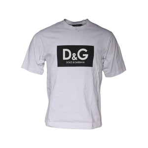Dolce & Gabbana White Logo Print Cotton Crew Neck T-shirt