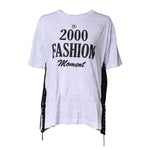 Dolce & Gabbana White Print Lace-Up Cotton Crew Neck T-shirt