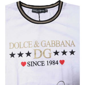 Dolce & Gabbana White Printed Round Neck Top Cotton T-shirt