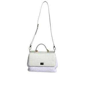 • Dolce & Gabbana White Rafia Leather SICILY Crossbody Bag