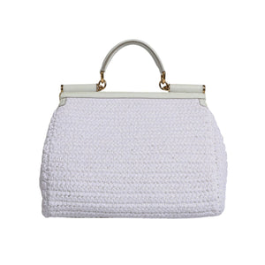 • Dolce & Gabbana White Rafia Leather Top Handle Crossbody Bag