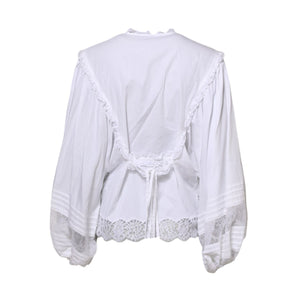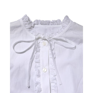 Dolce & Gabbana White Ruffled Lace Embellished Blouse Top