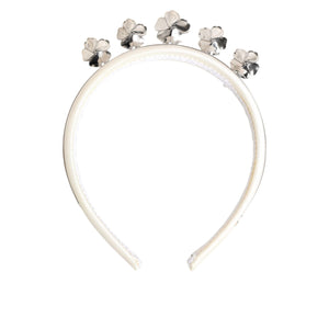 • Dolce & Gabbana White Satin Palladium Silver Floral Crown Tiara Headband