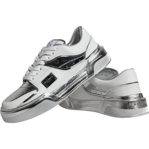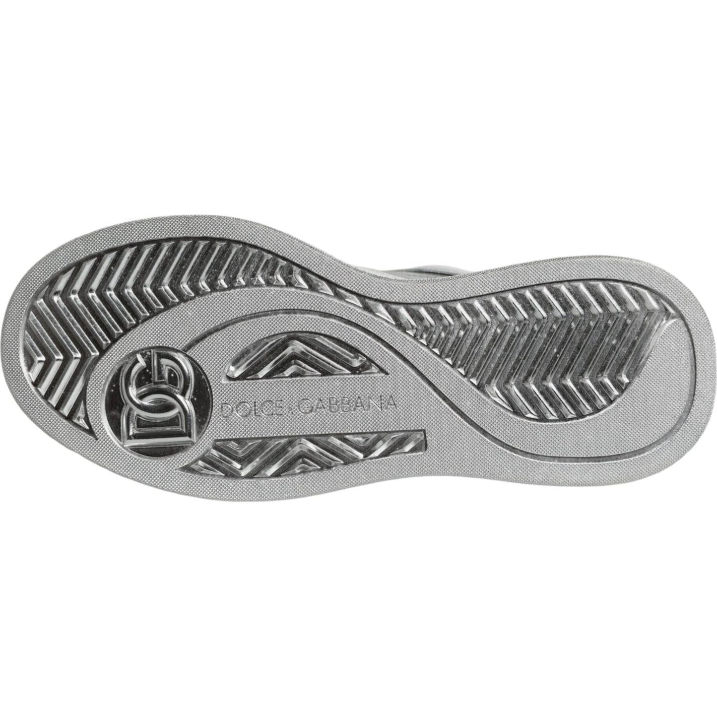 Dolce & Gabbana White Silver Leather Low Top Sneakers Shoes