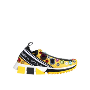 Dolce & Gabbana Yellow Sorrento Crystals Low Top Sneakers Shoes