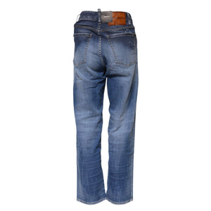Dsquared² Blue Washed Cotton Mid Waist Straight Jeans