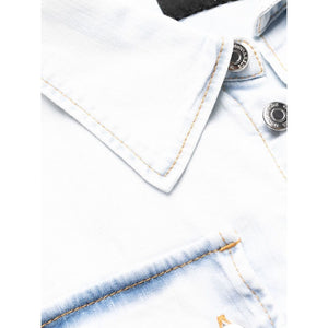 light wash denim minidress from DSQUARED2 featuring light blue, stretch-cotton, denim, light wash, two chest flap pockets, front button fastening, classic collar, long sleeves and thigh-length. Denim short dress Size and Fit - This piece fits true to size. We recommend you get your regular size. Model is 1,75m / 5ft 8in wearing size 40 (IT)