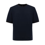 Dunhill Blue Pique Cotton T-Shirt. Contrasting black knit collar, small metal tag with logo applied on the side, regular fit
