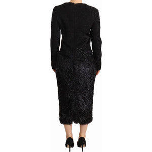 Masha Ma Black Studs Embellished Long Sleeves Sheath Midi Dress