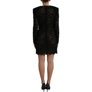 Dolce & Gabbana Black Bodycon Lace Cotton Sheath Mini Dress