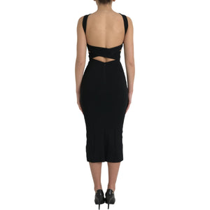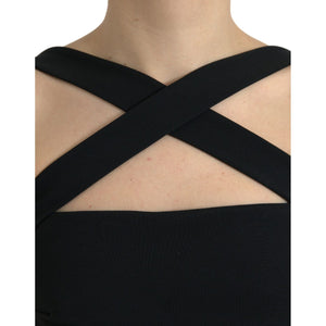 Dolce & Gabbana Black Sheath Halter Sleeveless Midi Dress