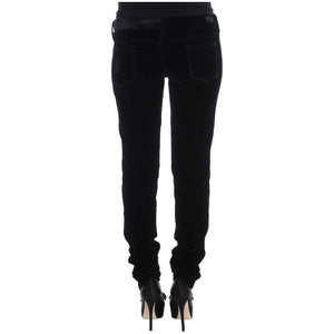 Ermanno Scervino Black Viscose Blend Velvet Slim Fit Pants