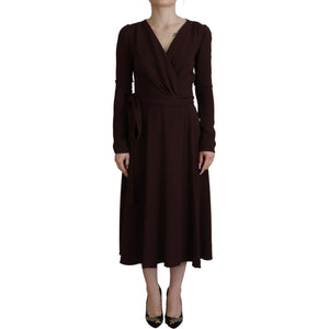 Dolce & Gabbana Brown Wrap Long Sleeve Midi Stretch Dress